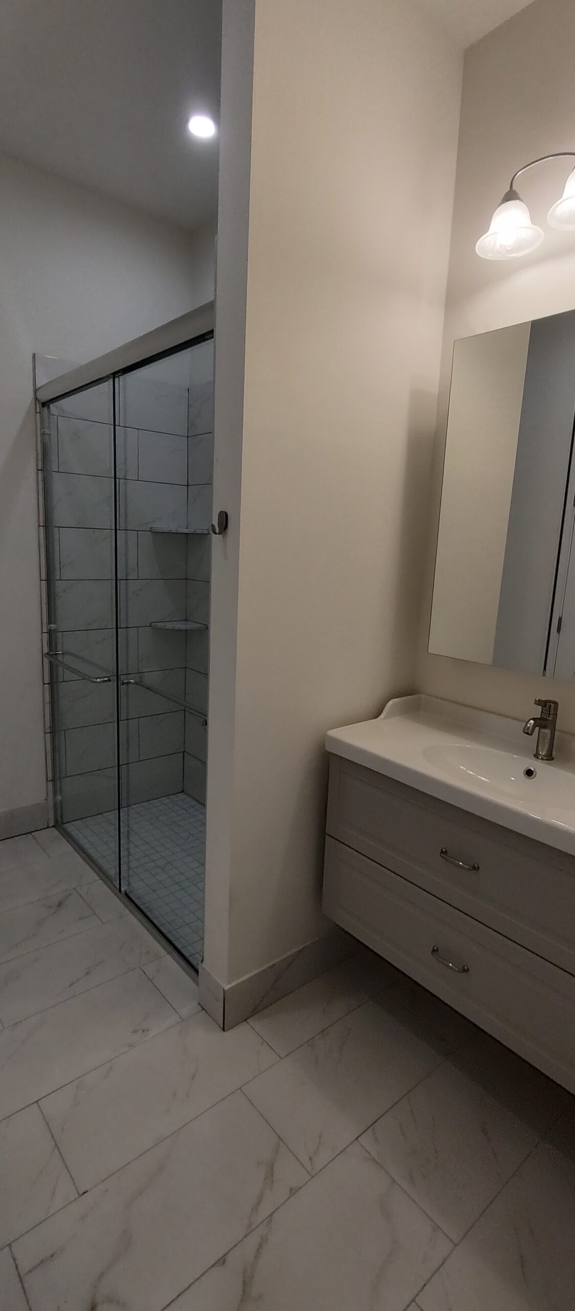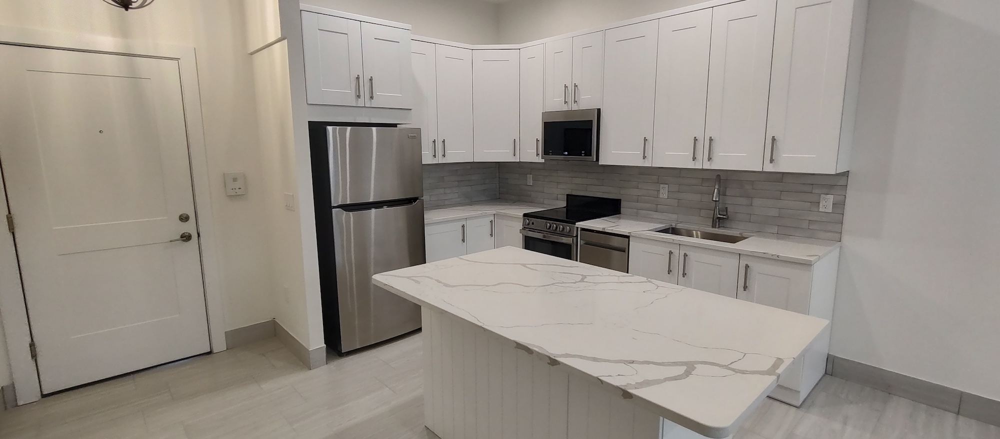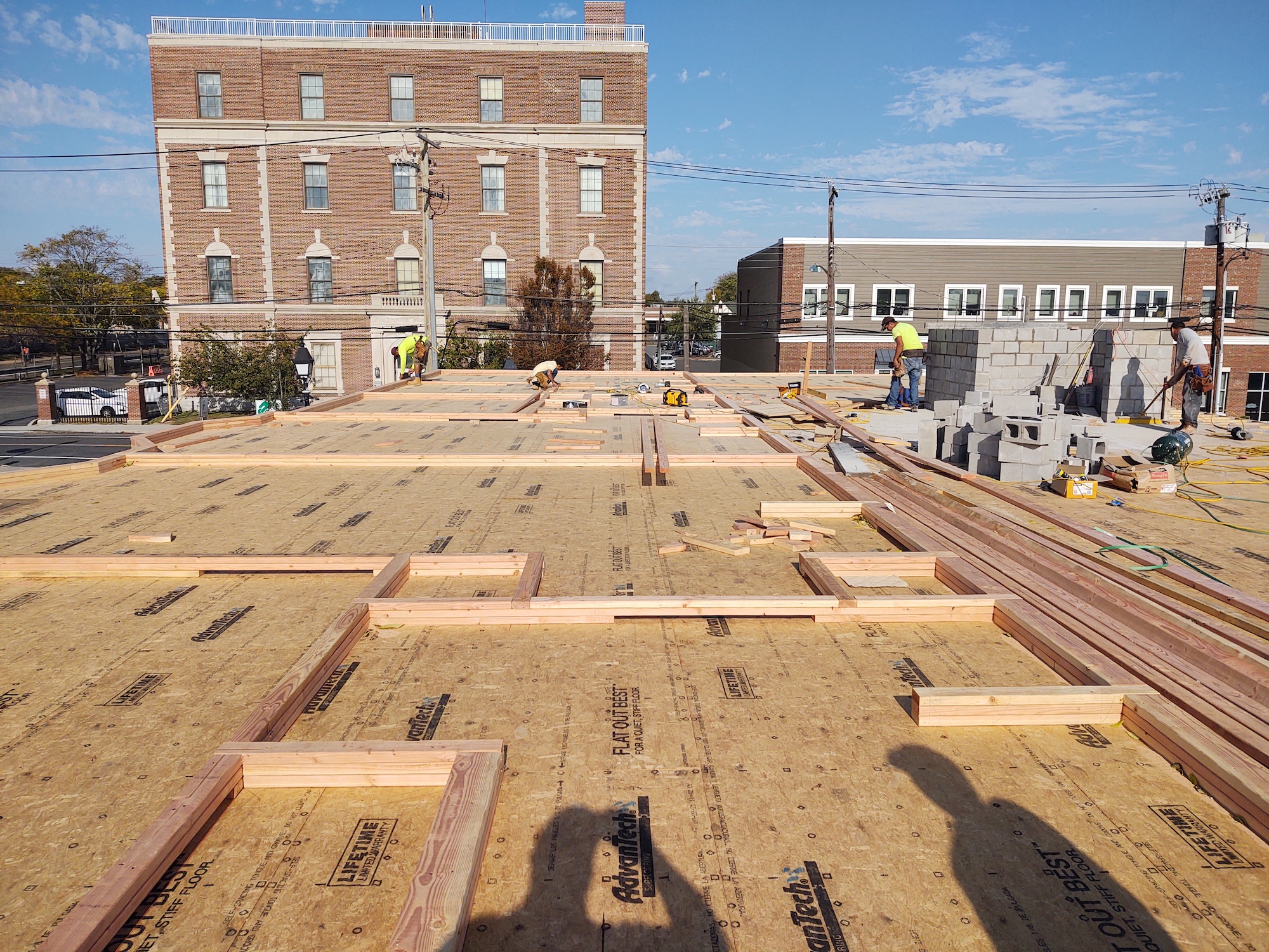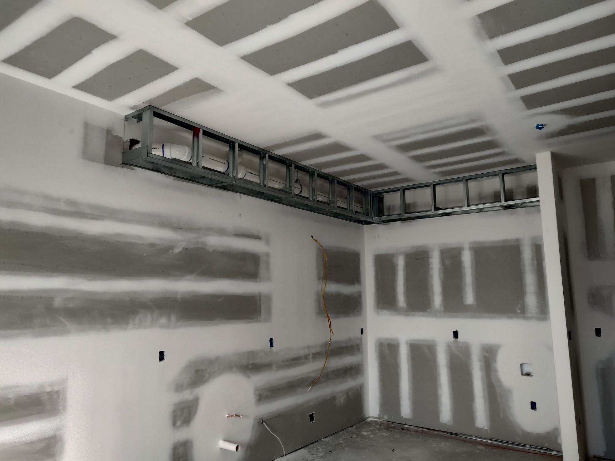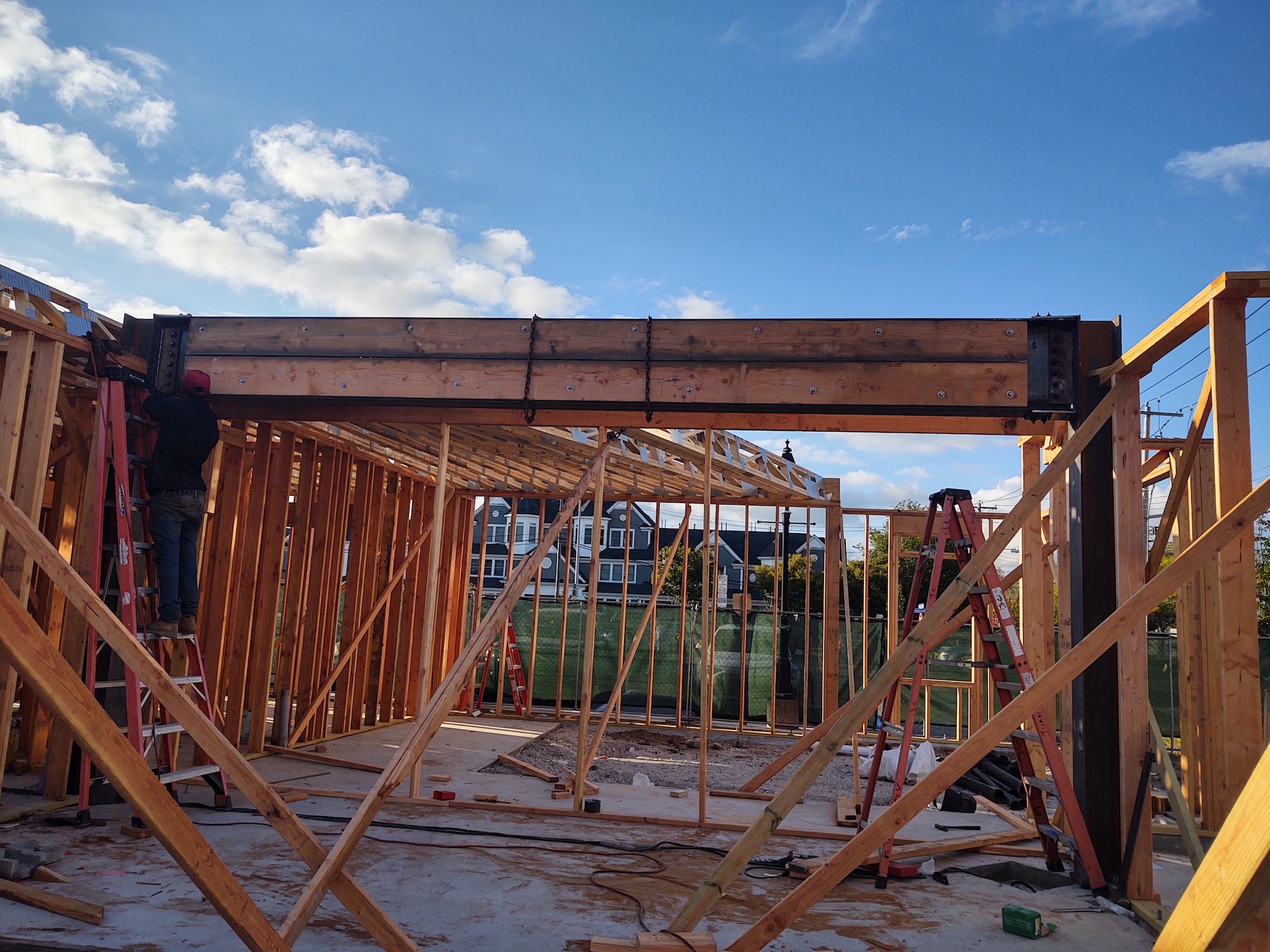 - Interiors: Insulation, drywall, large-format tile, and kitchen casework installation.
