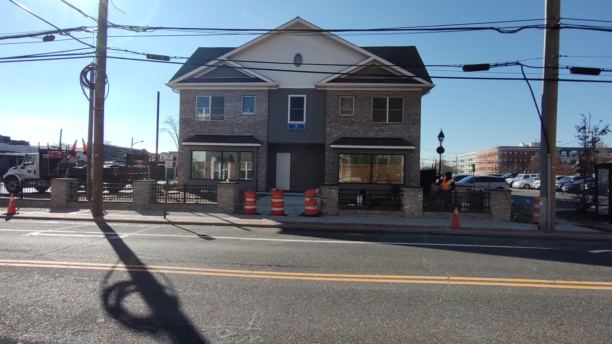 - Exterior & Sitework: Final façade, paving, and low site walls/railings at the public interface.