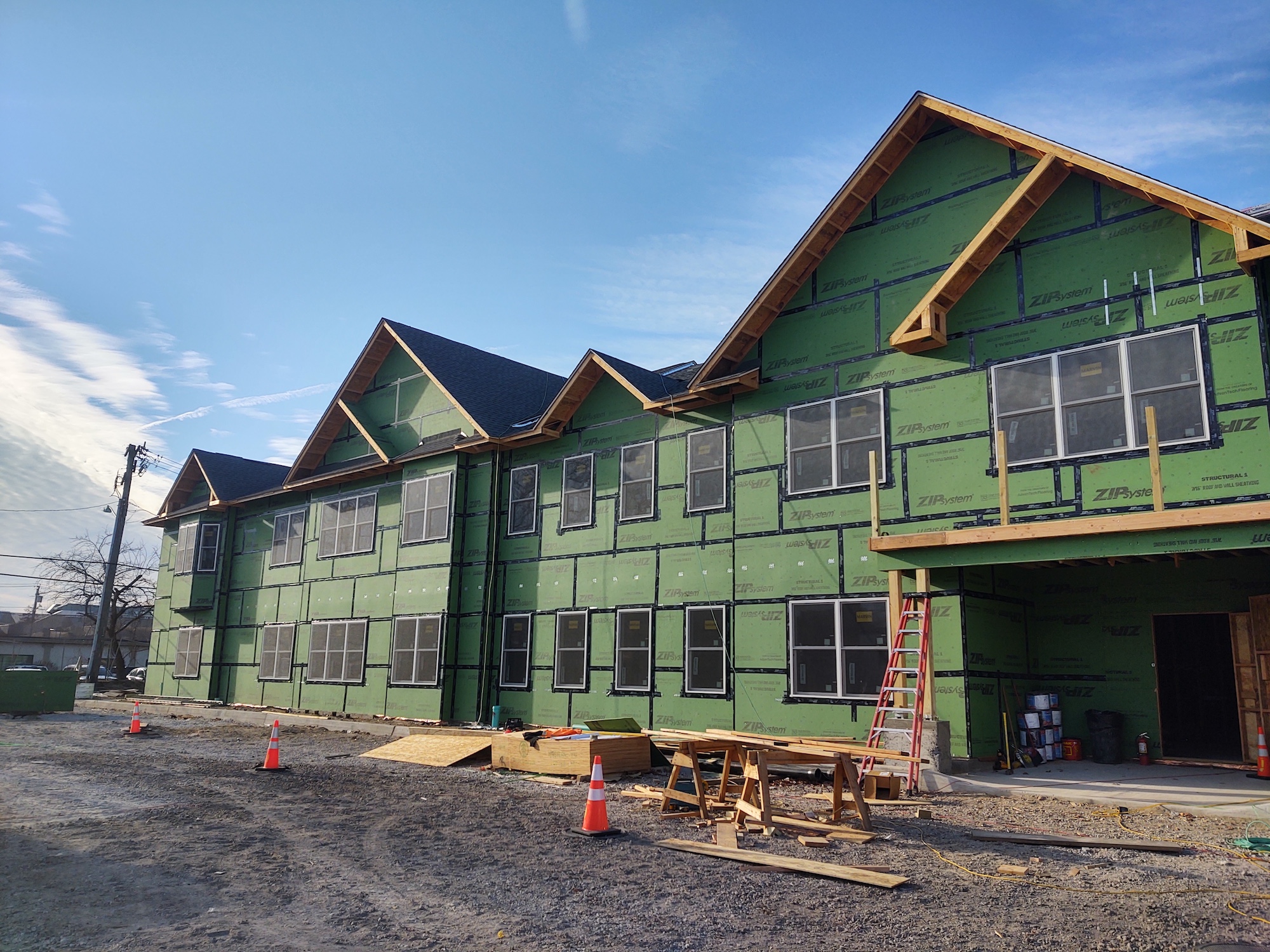 - Building Envelope: Sheathing with taped seams and WRB; window installation with flashing; mixed cladding (siding with masonry accents).